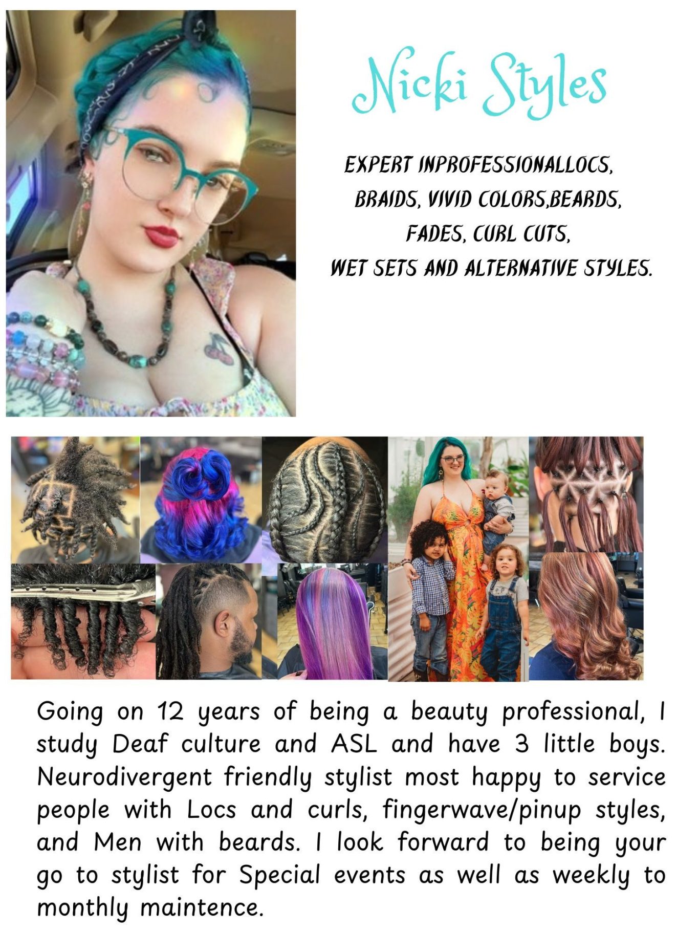 Hello! I am a creative artist and enjoy learning new languages and spending time outdoors. Anything I pick up is another thing waiting to be created. My artistic talents range beyond cosmetology and into other mediums such as drawing, painting, candle and soap making, baking, jewelry crafting, entomology, and I can throw and catch a football with my left hand. swim, fish and hike.