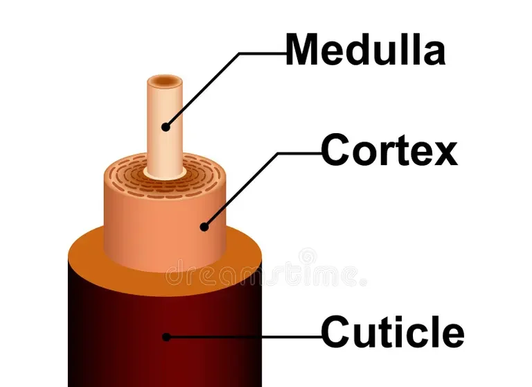 The structure of a single strand of hair
